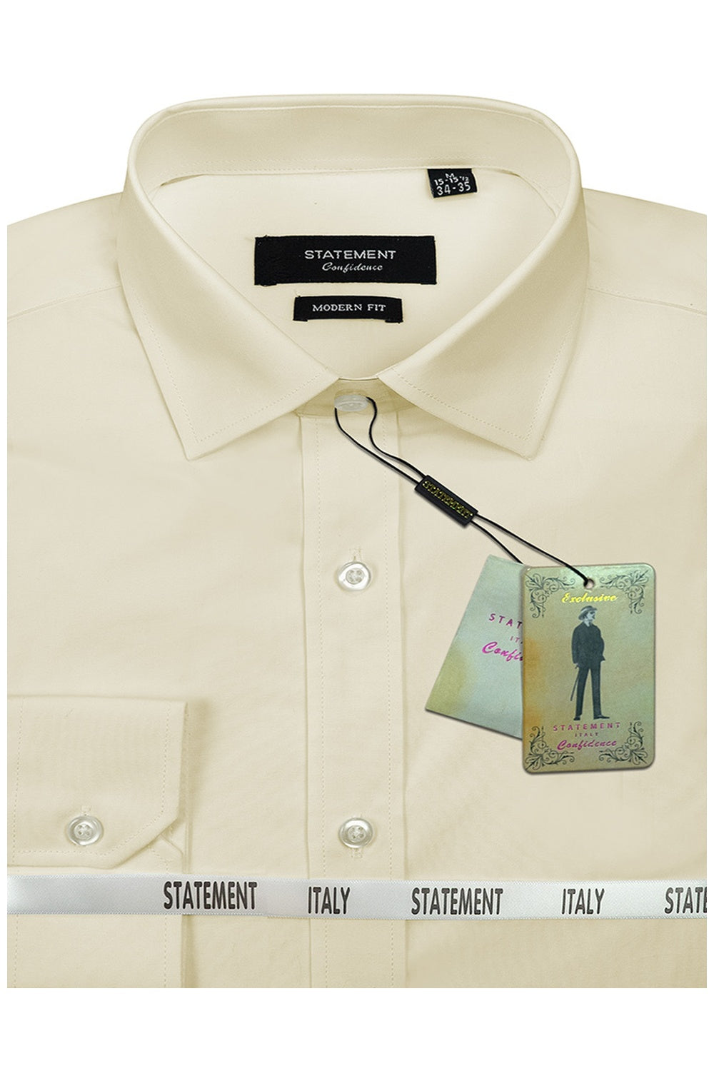 The "Aurora" Cream Laydown Dress Shirt, crafted from premium 100% cotton that is both lightweight and comfortable. The laydown collar is an updated spread design that pairs perfectly with either a bow tie or necktie. The modern fit size scale appeals to most gentleman of all shapes and sizes.