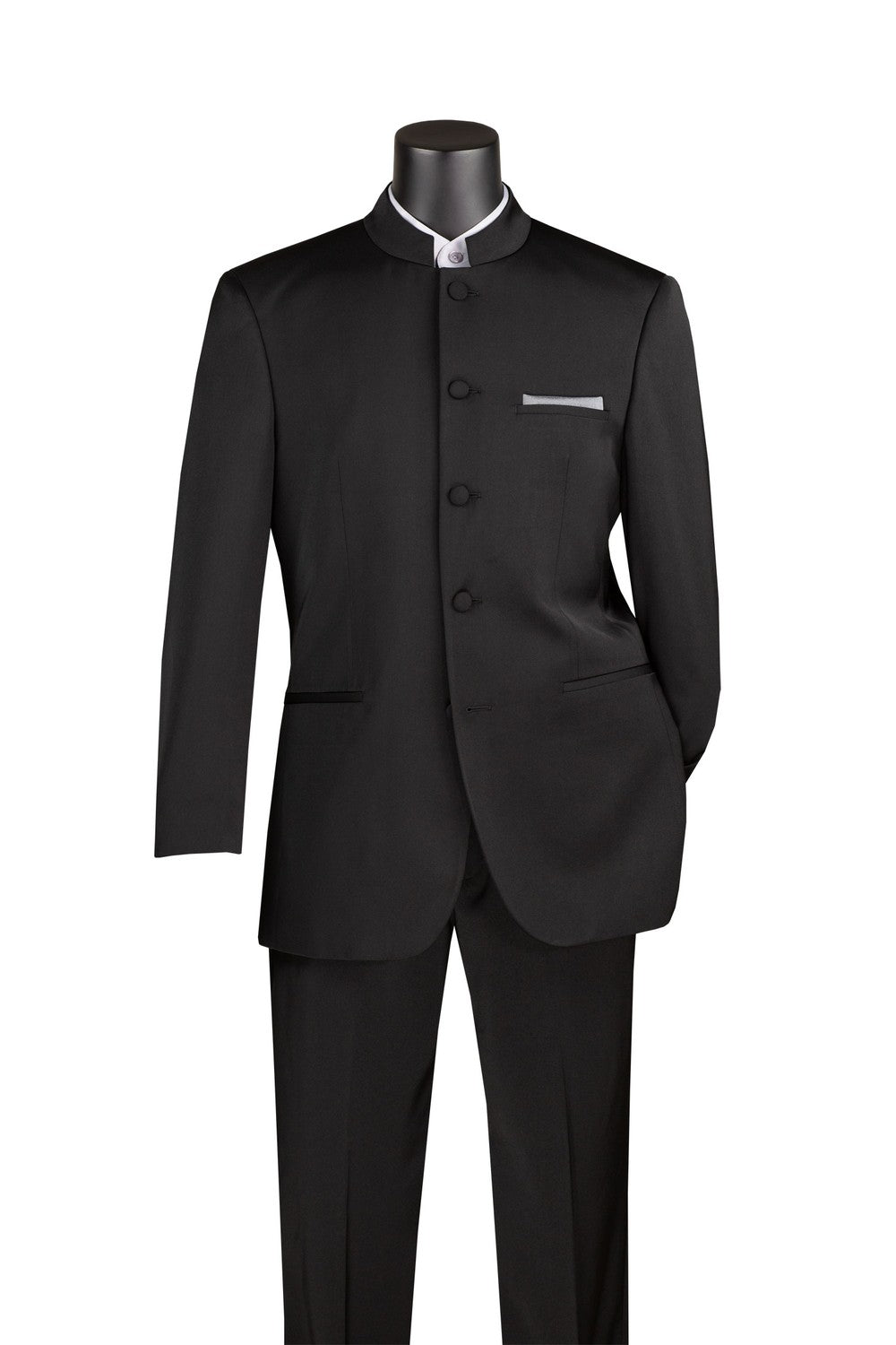 "Mandarin" Black 5-Button Suit (2-Piece Set)